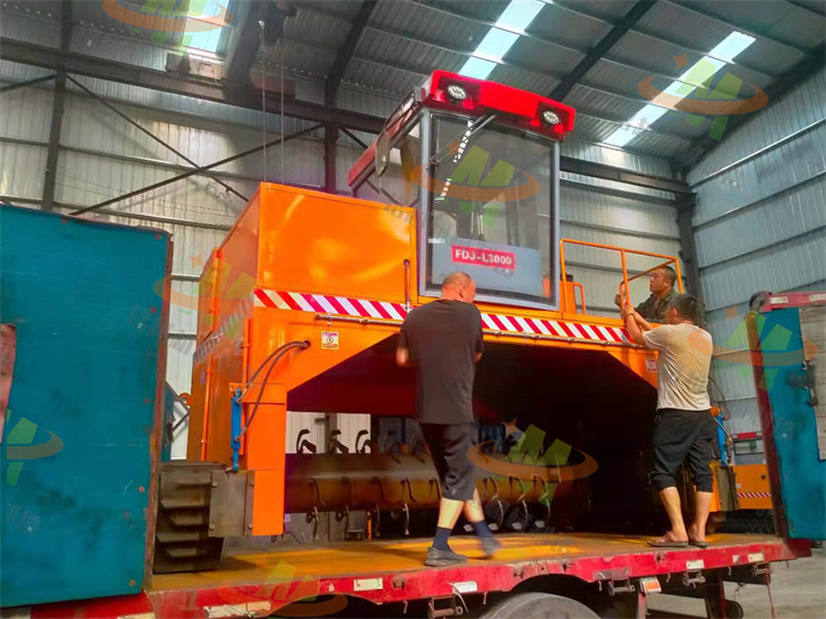 (3)翻拋滾筒由左右兩段反向螺旋和中間直段拋齒組成,旋轉(zhuǎn)的螺旋滾筒將三角形條垛物料向中間收攏,同時隨著滾筒旋轉(zhuǎn)使物料向后翻拋,從而實現(xiàn)頂層物料和內(nèi)部物料充分混合,物料和氧氣充分接觸,堆垛內(nèi)熱氣曝出。從而實現(xiàn)物料混合、通風、曝氣、翻拋,達到堆肥發(fā)酵的目的。雞糞升降式翻拋機 雞糞履帶翻拋機 豬糞履帶翻拋機